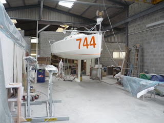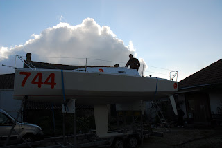 Demain 13 Novembre 2008, le bateau sera à l’eau, juste 1 semaine de « retard » sur un planning d’un an. C’est pas trop mal. Le reste à finir en Janvier, après les essais, ce sera l’intérieur, le « matossage », la cellule de vie et l’optimisation des instruments.