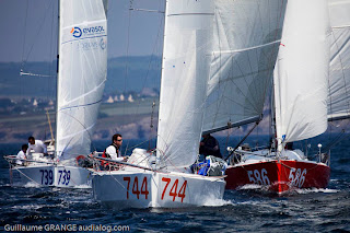 Toutefois au fil de l’avancement de la course j’ai trouvé des modes d’emploi intéressants, pour prendre la tête vers Groix au retour. Jamais extrême dans mes choix de route, juste poussant un peu plus quand les paramètres étaient tous au vert. Sur le retour en début de la deuxième nuit, il s’avérait qu’il fallait aller au fond de la baie de Concarneau ( vent, courant, clapots ça fait quand même trois bonnes raisons). Et bien je n’ai pas poussé à fond cette option, n’ayant pas suffisamment préparé le passage dans les cailloux, de nuit avec la fatigue potentielle de la deuxième nuit en mer. C’est là que je perds la course. Ensuite je n’avais qu’une idée en tête ne pas me faire bloquer au raz de sein au retour. Vous pourrez voir ma trace sur le site de la course. Entre Amaury et moi cela s’est joué à cet endroit. Pour moi je passais avec 3 minutes avant la fermeture des portes … mais si j’avais pris l’option du deuxième ( à la côte) je ne passais pas. Ensuite un petit galop dans la magnifique baie de Douarnenez avec la dernière voile à tester.
